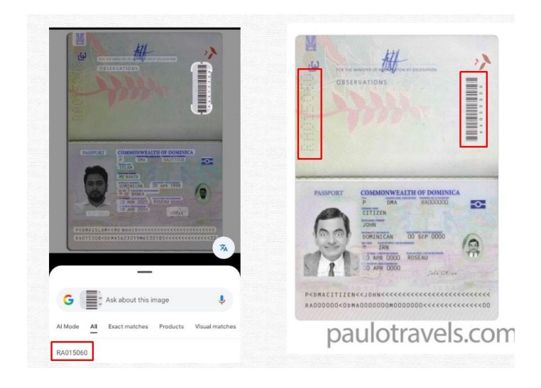 paulotravels.com একটি ট্রাভেল–সংক্রান্ত ওয়েবসাইট, যেখানে বিভিন্ন দেশের পাসপোর্টের নমুনা (sample বা demo) প্রদর্শিত হয়। এই ধরনের ডেমো ডকুমেন্টে একই নম্বর বা একই লেআউট থাকা অস্বাভাবিক নয় এবং তা দিয়ে কোনো ব্যক্তির প্রকৃত নাগরিকত্ব বা বৈধ পাসপোর্ট থাকার প্রমাণ হয় না।